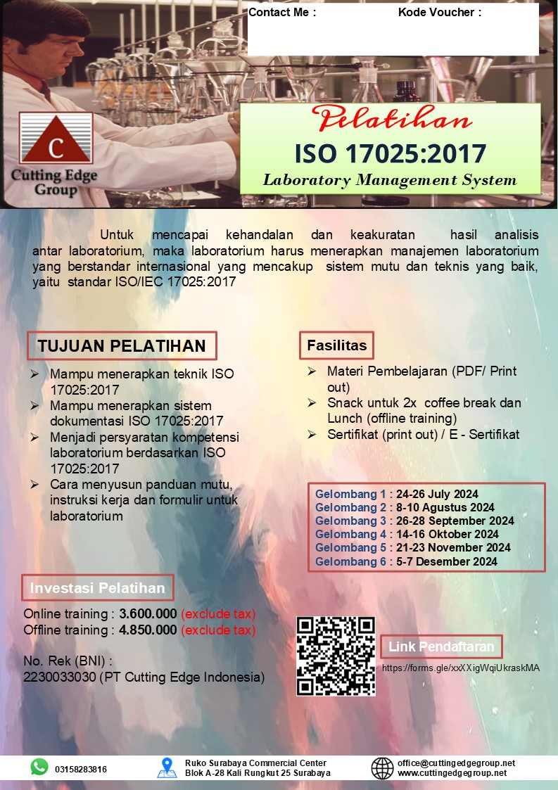 Training Penanggung Jawab Pengendalian Pencemaran Air adalah salah satu upaya pengelolaan lingkungan adalah pencegahan pencemaran air dari aktivitas industri. Keberhasilan upaya pencegahan pencemaran air dari sektor industri ditentukan oleh personil penanggung jawab di dalamnya. Oleh karena itu dibutuhkan personil yang memiliki engetahuan, keterampilan dan sikap yang menunjang dalam pelaksanaan tugas hengendalikan pencemaran air..